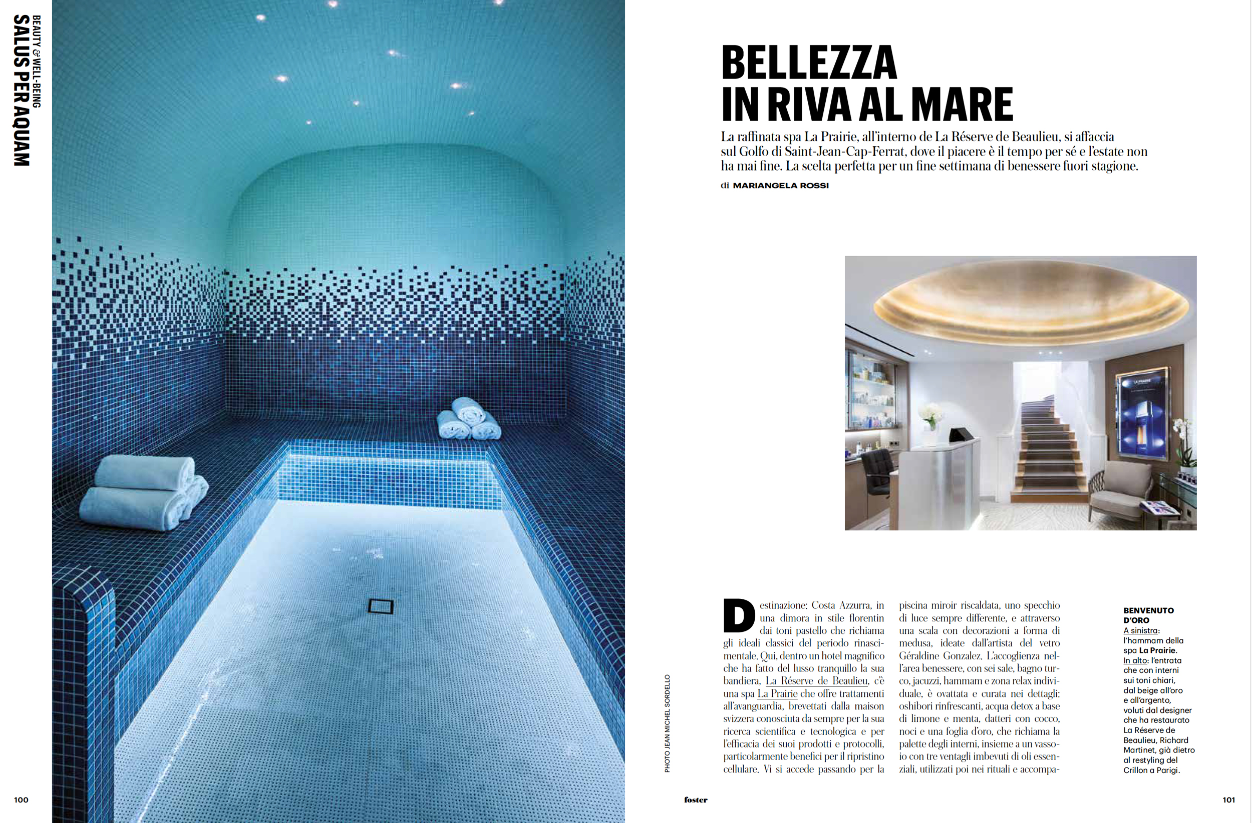 In an article featured in Foster magazine, La Réserve de Beaulieu, located on the French Riviera overlooking the Gulf of Saint-Jean-Cap-Ferrat, unveils its jewel: the prestigious La Prairie Spa. This haven of wellness offers state-of-the-art treatments, rooted in Swiss scientific expertise, focusing on cellular renewal and skin rejuvenation. The spa includes a heated indoor pool, hammam, jacuzzi, and elegant relaxation areas. Signature treatments such as the Pure Gold Radiance Extreme and the White Caviar Facial are designed to restore radiance and vitality. A dream destination that combines luxury, relaxation, and timeless seaside elegance.